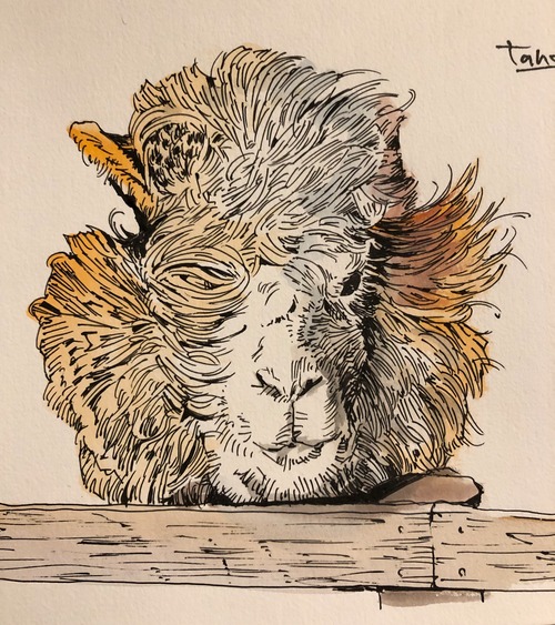 アルパカ(強風)その2 ■原画 ■F1(220×160mm)サイズ画用紙。 ■アクリルガッシュ、水彩 額なし。クリアファイルに入れて郵送いたします。