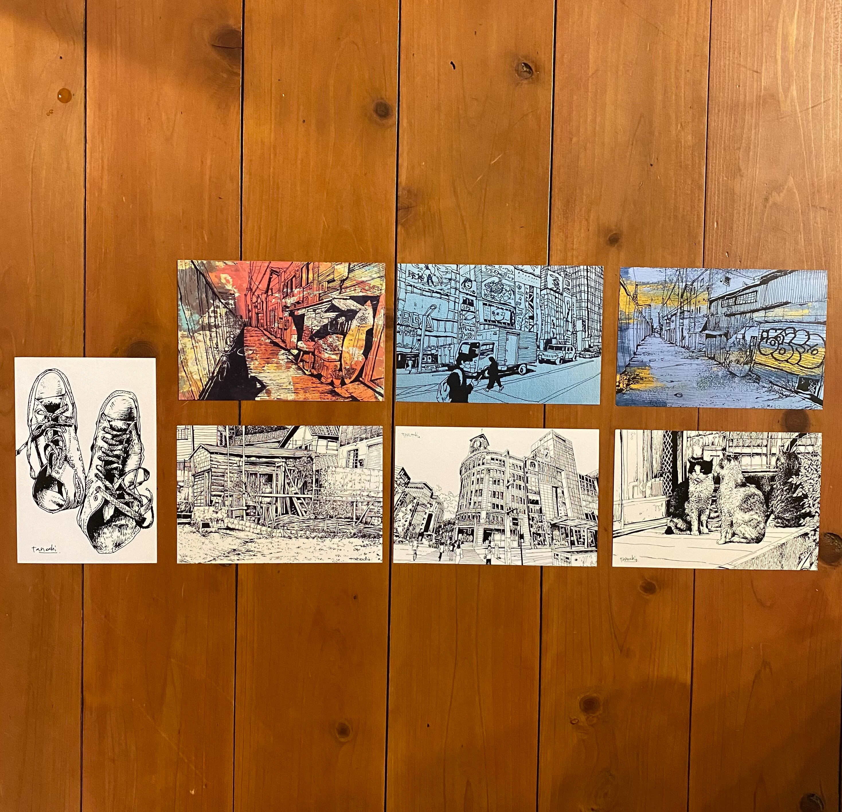 ポストカード7枚セットです。 ・靴 ・海辺の小屋 ・銀座 ・猫会議 ・黄金町にて ・秋葉原にて ・黄金町にて2 の7枚です。